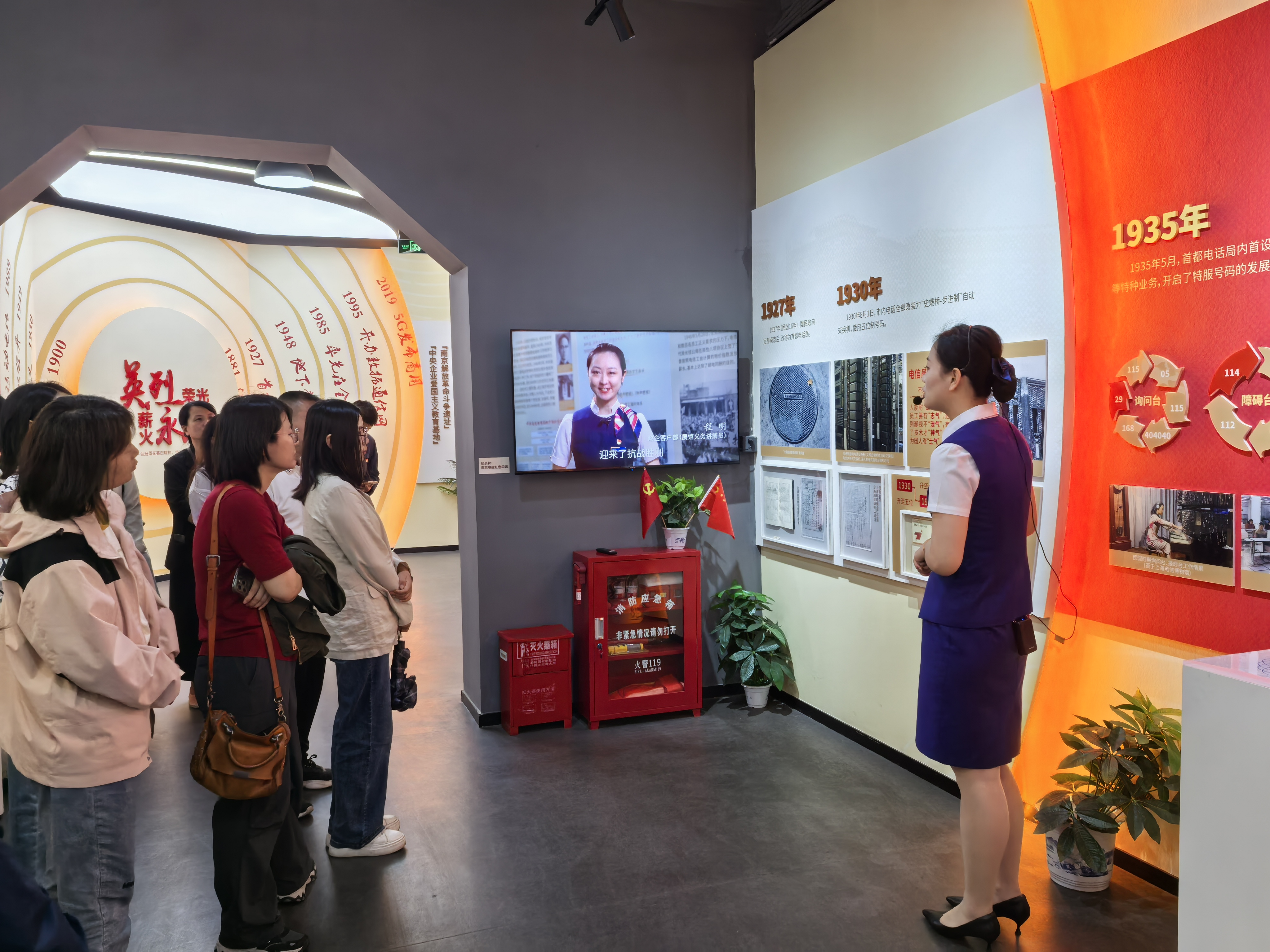 该馆展示了新民主主义革命时期南京电信地下党员为了民族解放不怕牺牲、英勇斗争,为通信事业发展披荆斩棘、奋发拼搏的英勇事迹。展览分为“百年电波、红色印记、赓续传承、星辰大海”四个版块,展出实物约80余件,包含大量珍贵的史料和影像资料,再现了南京电信地下党员维护通信电路畅通、完整地把通信设备和物资移交到人民手中,取得护局胜利,迎接南京解放的历史篇章。