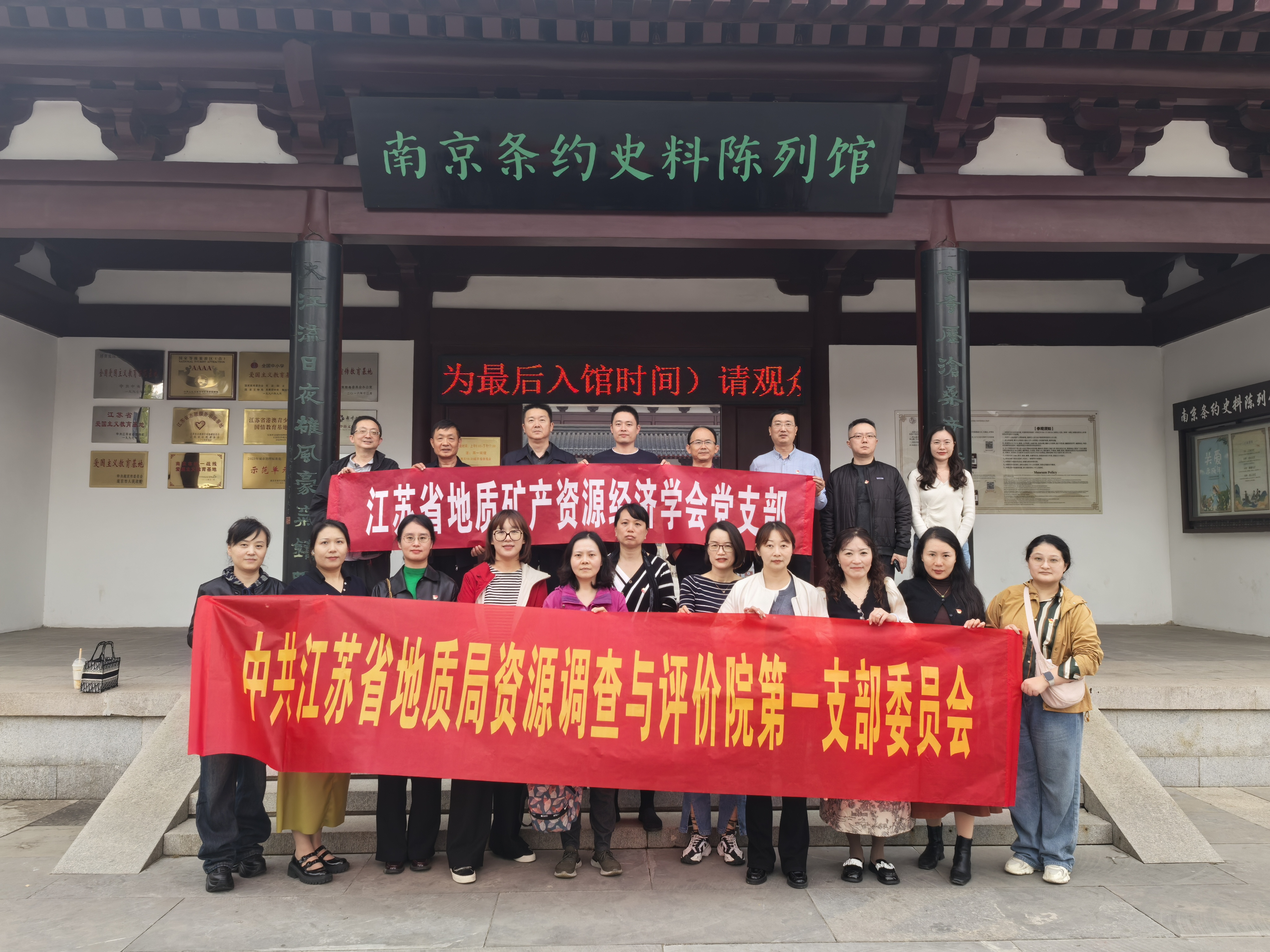 两个支部的党员来到了坐落于静海寺内的南京条约史料陈列馆。这里是1842年8月29日中英《南京条约》的议约地,因此被视为中国近代史起点的象征。作为中宣部首批命名的国家级“爱国主义教育示范基地”,该馆于1990年落成开放,目前是占地面积15000平方米的遗址型纪念馆。馆内存有大量图片、史料和实物,馆内的条约陈列室,陈列着我国近代(至1949年)与外国政府签订的1100多个条约。