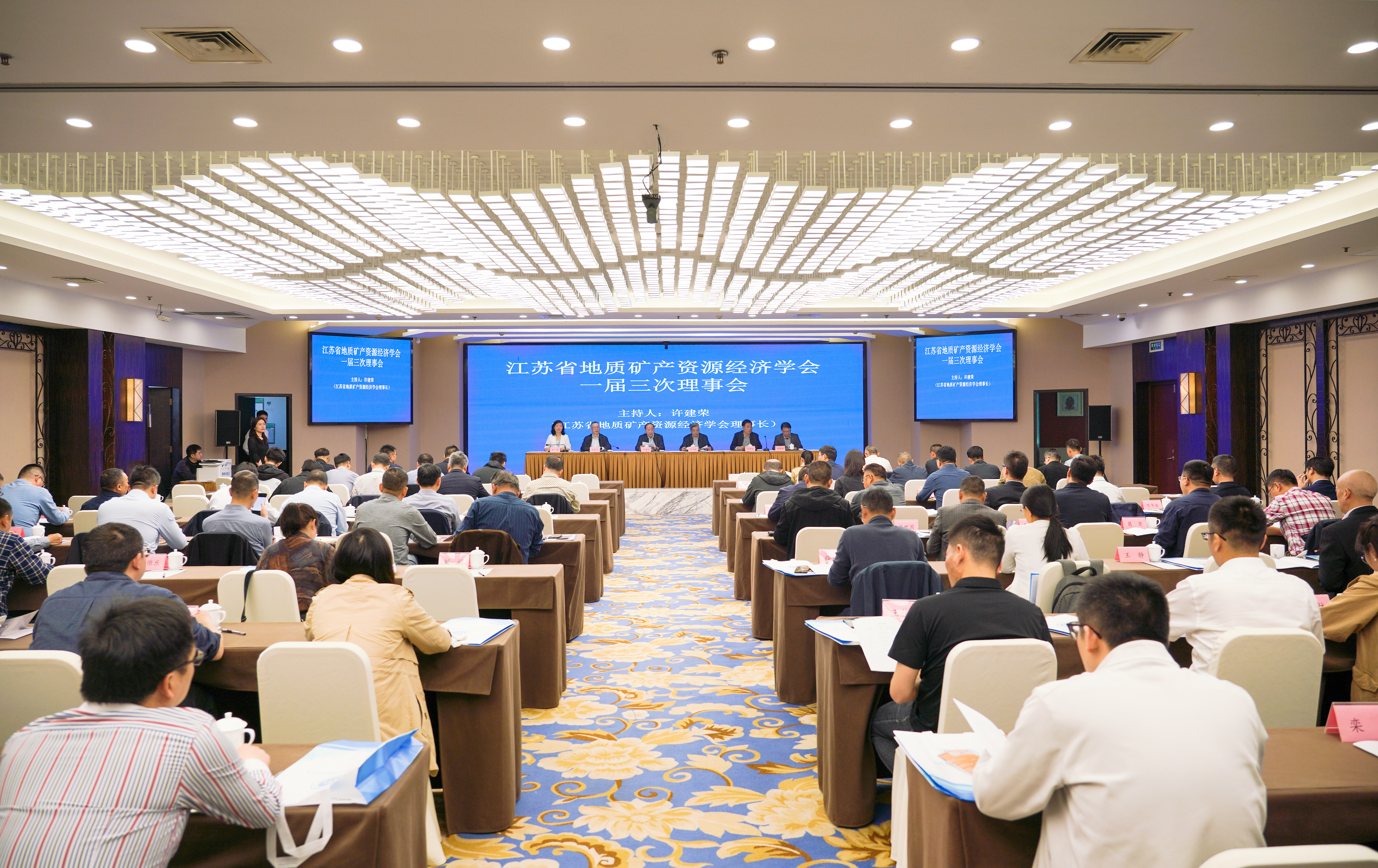 2025年3月26日上午,江苏省地质矿产资源经济学会一届三次理事会在南京山水大酒店召开。会议由学会理事长许建荣主持,学会副理事长王汝成、桂长杰、许洪信、刘燕、陈晓峰出席会议并在主席台就坐。会议高举习近平新时代中国特色社会主义伟大旗帜,贯彻落实省委省政府战略部署,总结回顾2024年度工作,部署安排2025年目标任务,听取并审议通过了学会财务预决算报告,审议通过了《学会固定资产管理实施办法》《学会学术交流活动管理办法》和《学会新闻发言人制度》等三项规章制度,通过了学会关于部分理事替(增)补的决定(草案)和关于增补学会副秘书长的建议草案。