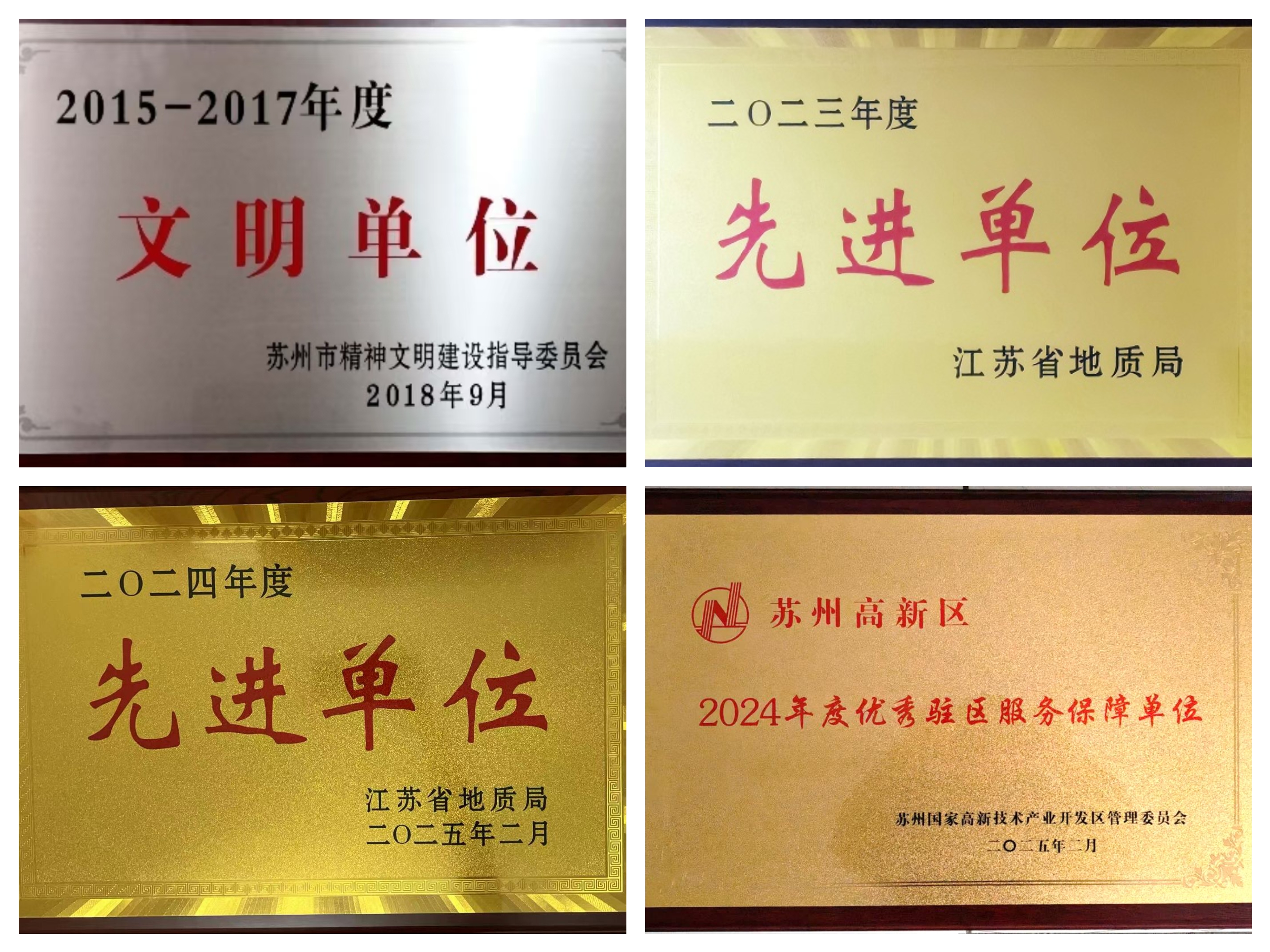 荣获全国地勘行业先进集体、全国模范职工之家、江苏省五一劳动奖状、江苏省工人先锋号,江苏重点工程建设功臣集体和江苏省、苏州市、江苏省地质局文明单位等荣誉称号;