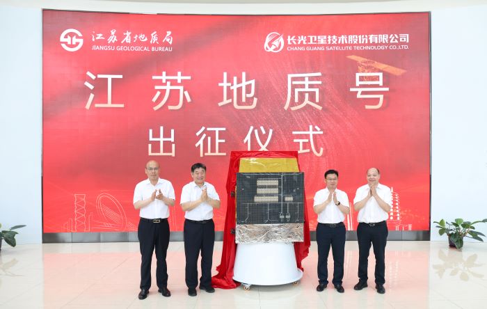 7月10日,江苏省首个地质专属卫星—“江苏地质号”出征仪式在吉林省航天信息产业园举行,卫星将于近期在黄海附近海域择期发射。省自然资源厅党组成员、副厅长,省地质局党委书记、局长程知言,局党委委员、一级巡视员、省地调院党委书记谢兴楠,局党委委员、副局长余新明出席,共同见证卫星出征。