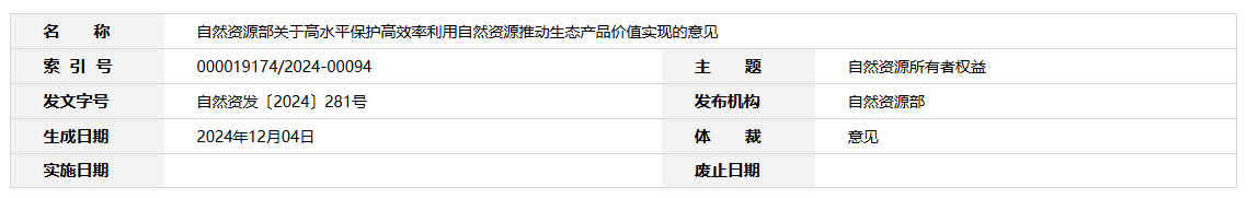 自然资源部关于高水平保护高效率利用自然资源推动生态产品价值实现的意见