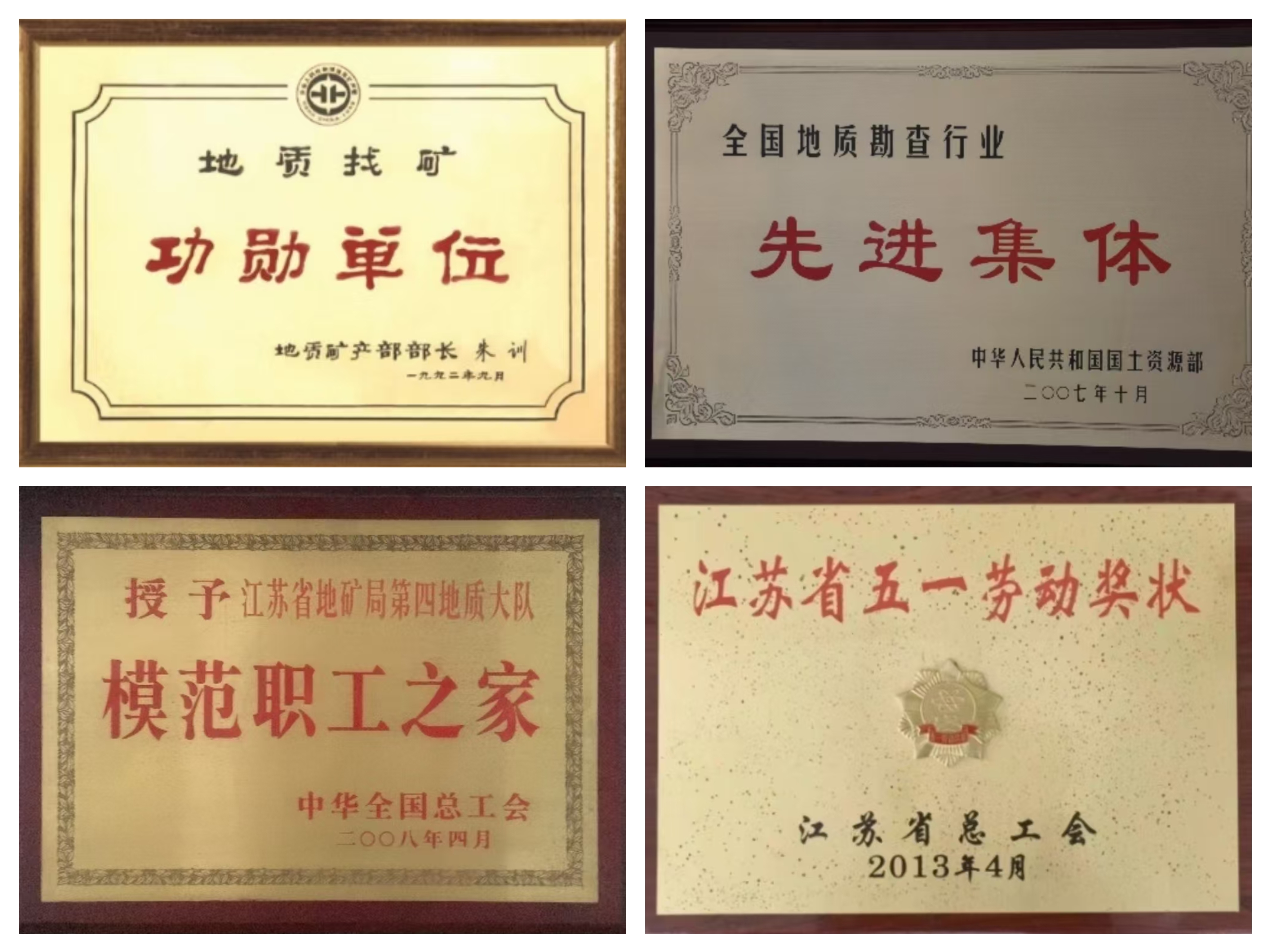 荣获全国地勘行业先进集体、全国模范职工之家、江苏省五一劳动奖状、江苏省工人先锋号,江苏重点工程建设功臣集体和江苏省、苏州市、江苏省地质局文明单位等荣誉称号;